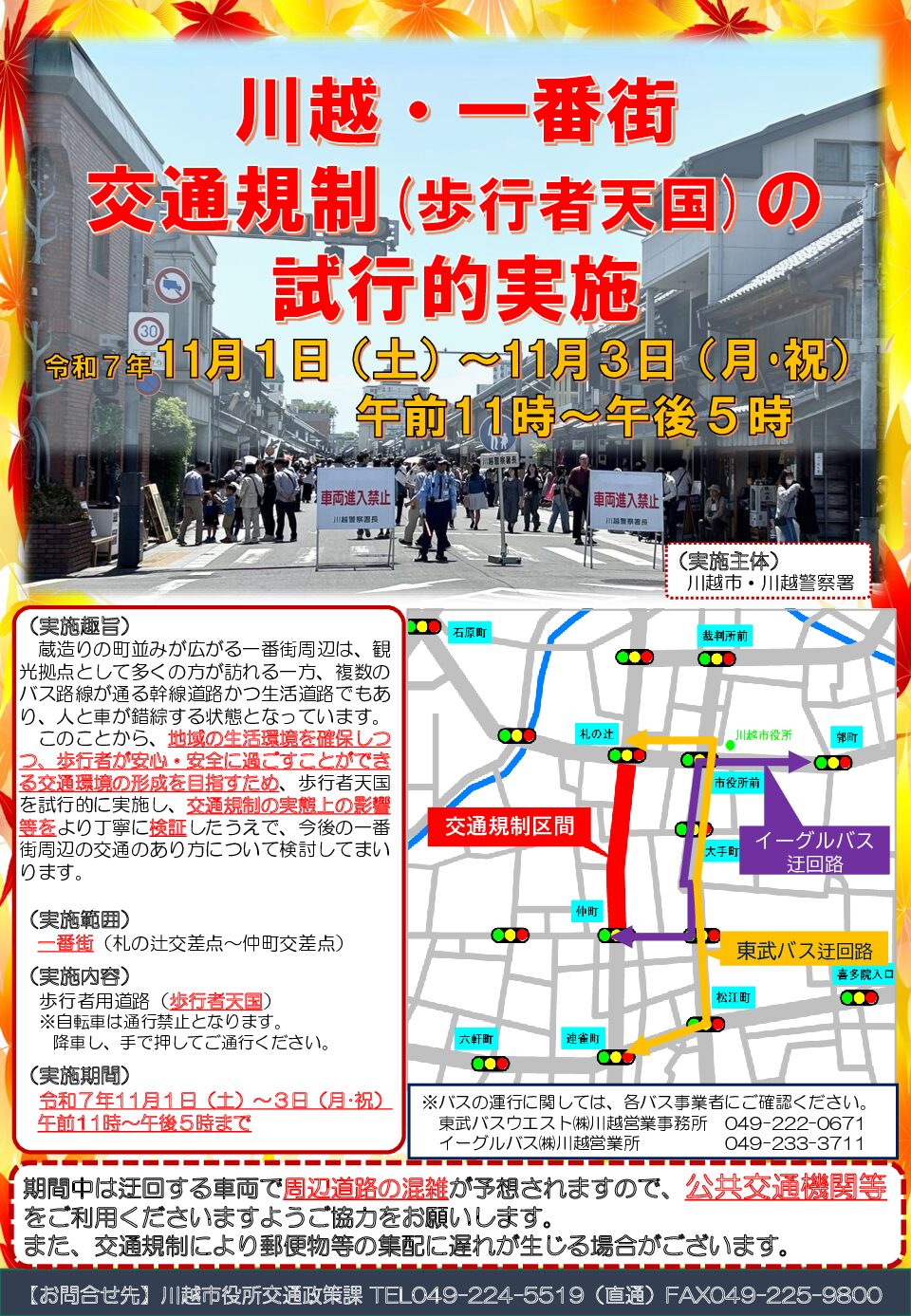 川越・一番街交通規制(歩行者天国)の試行的実施 令和7年11月1日(土)~11月3日(月・祝)